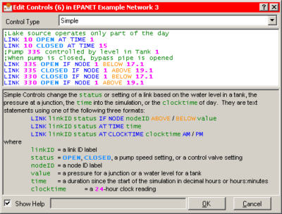 Controls mandate the behaviour of links (pipes, pumps or valves) based on time or other conditions in a network. Simple Controls have a very simple syntax while Rule-based Controls can be much more complex. The [...]