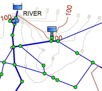 WaterSums can automatically generate terrain shading based on the elevations given in a network model for junctions, tanks and reservoirs. This process is experimental at the moment, but can help significantly with the visualisation of [...]