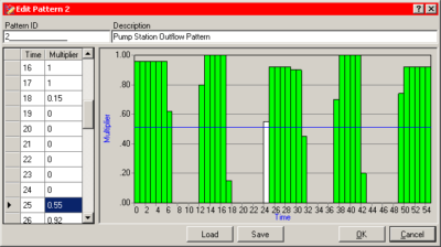 Patterns can be used when values vary discretely with time. Patterns specify multipliers of a given value as it varies through the time steps of a simulation.