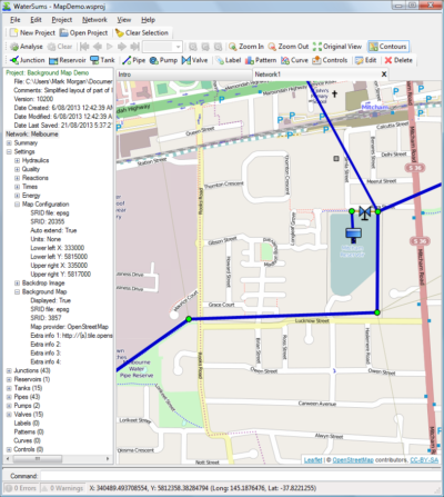MapDemo.wsproj Points of note OpenStreetMap (© OpenStreetMap contributors) background map of Melbourne, Australia. The network map configuration is shown in the project tree including the projection information (file: epsg, SRID: 20355). Background map configuration information [...]