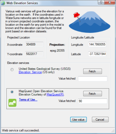 WaterSums can now provide access to web elevation services to help with confirming elevations of nodes (junctions, reservoirs and tanks) in network models. Once an elevation is fetched from a web service, it can be [...]
